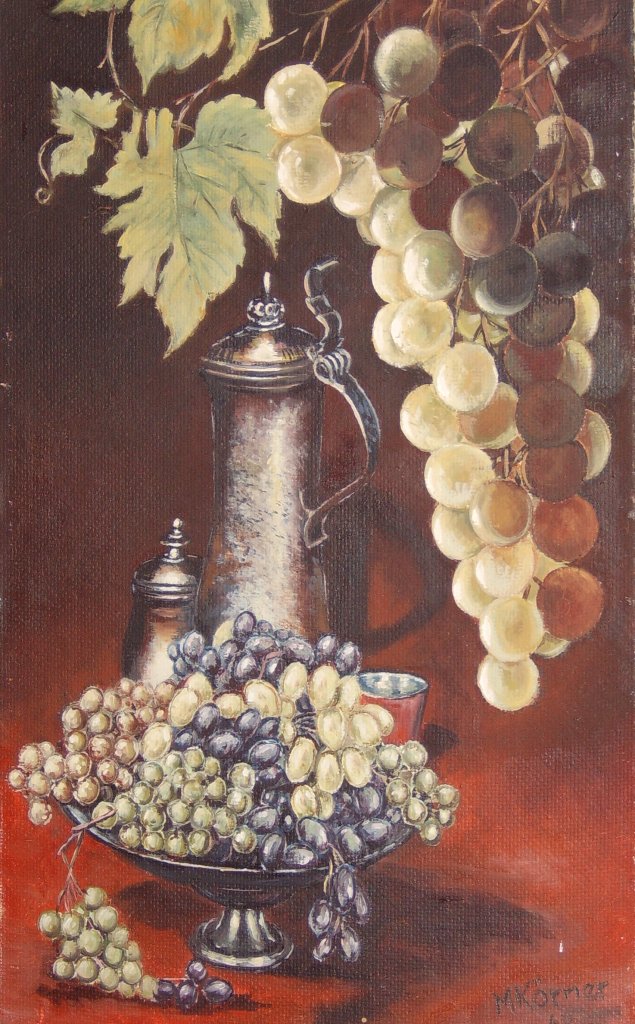 Geblieben ist das Bildmotiv des Weinkrugs. Dieses Bild wurde mehrmals in verschiedenen Formaten und Abwandlungen gemalt.